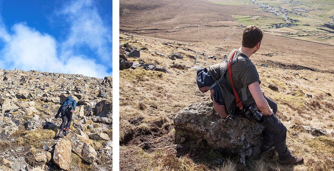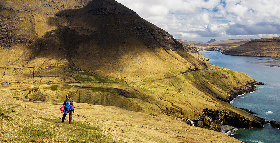 Unsere Wanderung zum Fjallavatn See mussten wir allerdings auch abbrechen, da wir keinen Weg über einen Fluss gefunden haben... Es ging dann also auf den Bergpass zwischen Gasadalur und Bour. Es geht sehr, sehr steil auf 400 Meter Höhe hinauf. Oben angekommen läuft es sich aber leicht über den Pass. Die Aussicht von dort war toll und die Anstrengung hat sich gelohnt. Wie weiter oben schon erwähnt, war dieser Weg für die Menschen von Gasadalur früher der einzige Weg zur Außenwelt (neben dem Schiff oder später dem Helikopter).