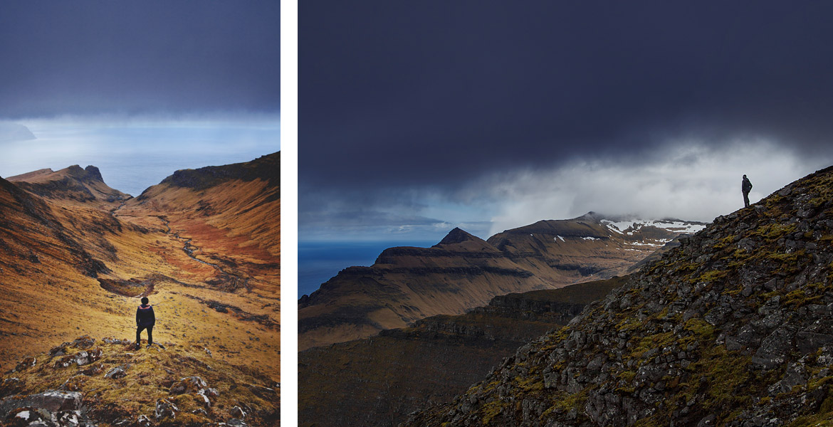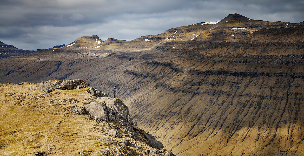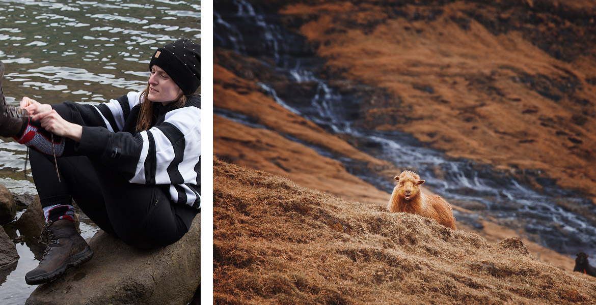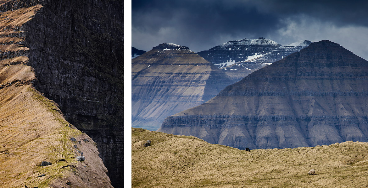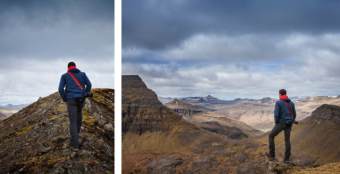 Von Tindholmur gibt es viele tolle Fotos und ich wollte auch so eins... Eine Beschreibung in einem Forum wies uns den Weg. Ziemlich abenteuerlich aber relativ einfach zu laufen. Allerdings wurde der Pfad immer schmaler. Der Pfad führte direkt am Berghang entlang. Links ging es nach oben und rechts ziemlich steil und hoch bergab ins Wasser. Andere lachen da sicher drüber, aber mir war das zu eng. Für ein Foto war es mir dann doch zu riskant, außerdem steckten uns schon einige Kilometer und Höhenmeter von der Wanderung davor in den Knochen. An diesem Tag kamen wir locker auf 18 km. Das Licht war auch total bescheiden und so sind wir dann wieder 2 Stunden zurück zum Auto gelaufen. Die Wanderung war trotzdem schön und die Landschaft toll. Mit Höhen habe ich nicht so das Problem, bei mir ist es immer nur die Enge, wenn wenig Platz zum ausweichen ist und ich keinen Schritt daneben machen darf. Wahrscheinlich weil ich so tollpatschig bin...