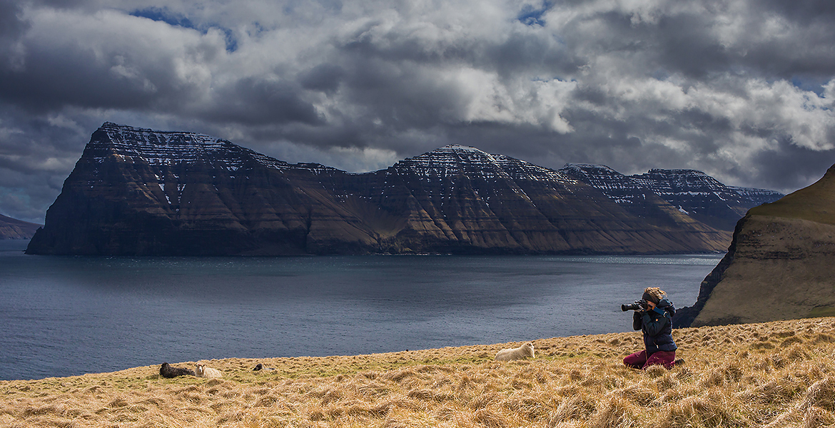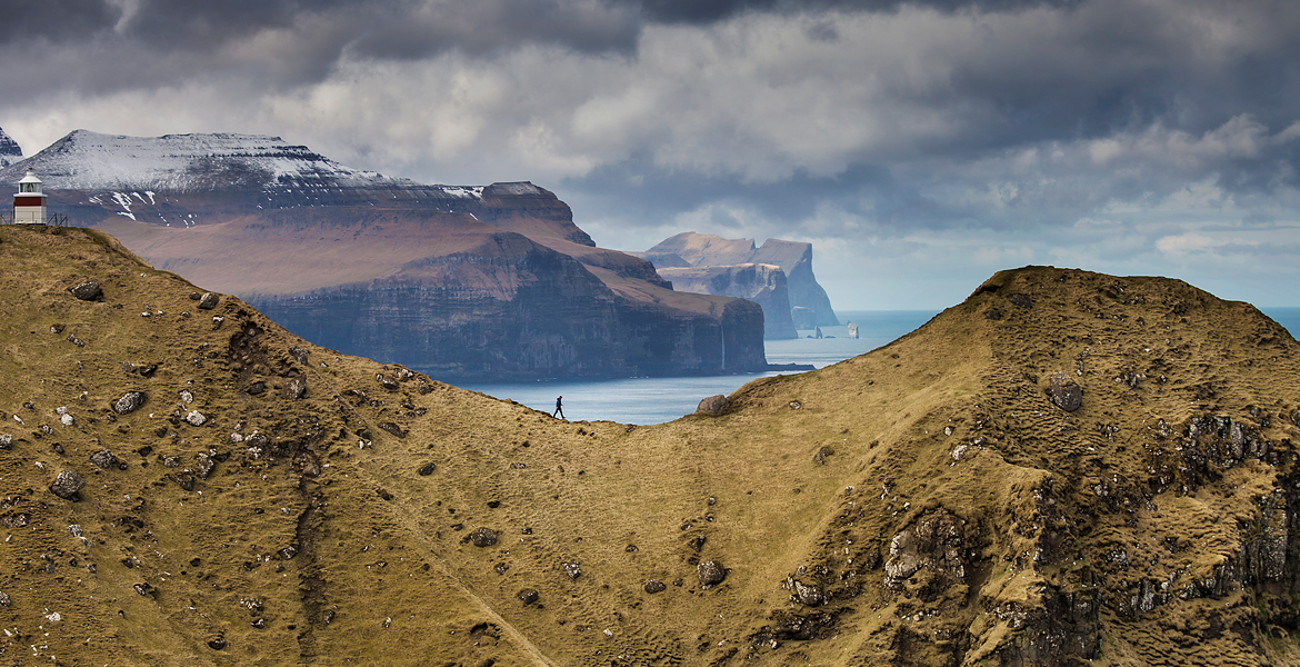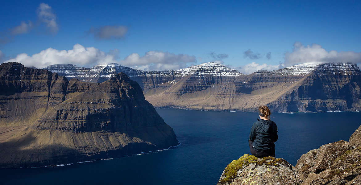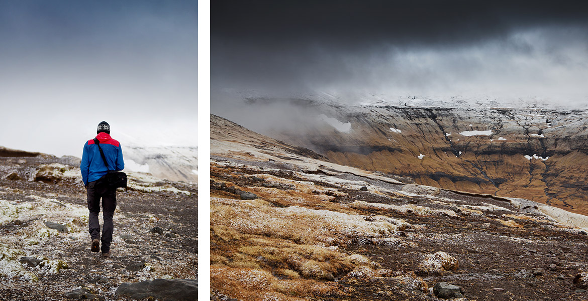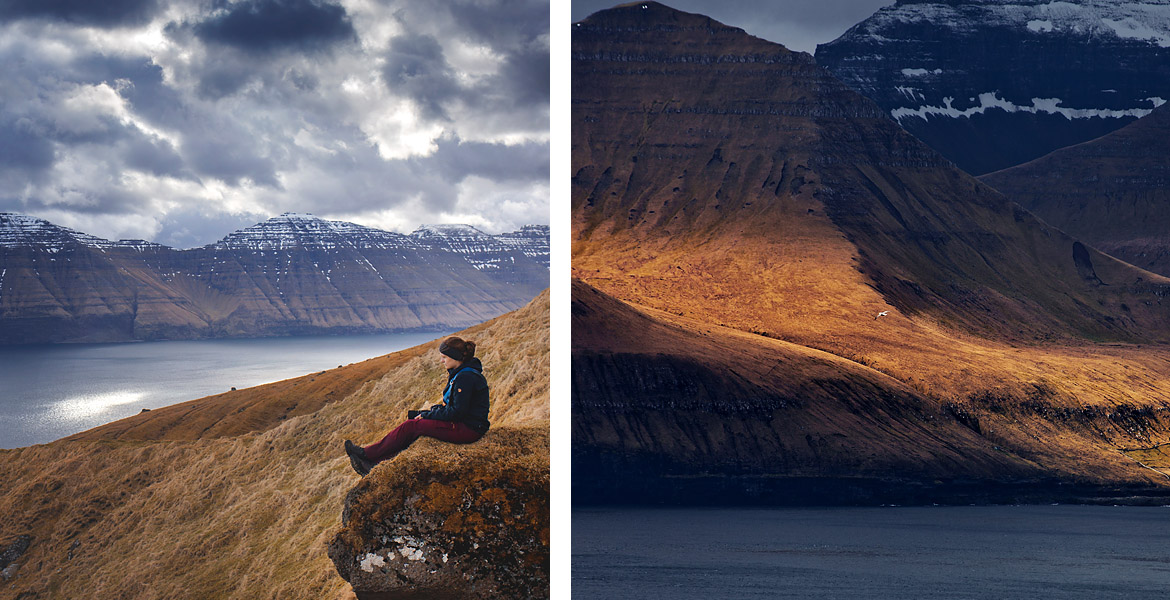 Von Tindholmur gibt es viele tolle Fotos und ich wollte auch so eins... Eine Beschreibung in einem Forum wies uns den Weg. Ziemlich abenteuerlich aber relativ einfach zu laufen. Allerdings wurde der Pfad immer schmaler. Der Pfad führte direkt am Berghang entlang. Links ging es nach oben und rechts ziemlich steil und hoch bergab ins Wasser. Andere lachen da sicher drüber, aber mir war das zu eng. Für ein Foto war es mir dann doch zu riskant, außerdem steckten uns schon einige Kilometer und Höhenmeter von der Wanderung davor in den Knochen. An diesem Tag kamen wir locker auf 18 km. Das Licht war auch total bescheiden und so sind wir dann wieder 2 Stunden zurück zum Auto gelaufen. Die Wanderung war trotzdem schön und die Landschaft toll. Mit Höhen habe ich nicht so das Problem, bei mir ist es immer nur die Enge, wenn wenig Platz zum ausweichen ist und ich keinen Schritt daneben machen darf. Wahrscheinlich weil ich so tollpatschig bin...