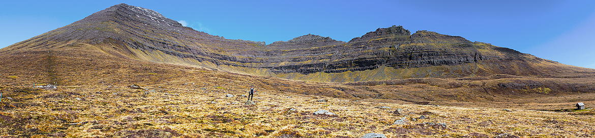 Am Samstagmorgen wollten wir dann eigentlich die Fähre nach Kalsoy nehmen, aber nach langem Warten wurde die Fahrt abgesagt. Plan für den Tag geändert und in den Norden der Insel gefahren. In Vidareidi ging unsere Wanderung auf den Villingadalsfjall (844 Meter) los. Die Sonne schien, keine Wolke am Himmel, T-Shirt Wetter.