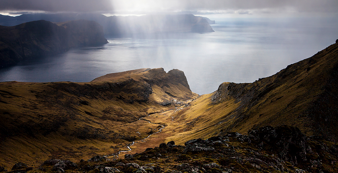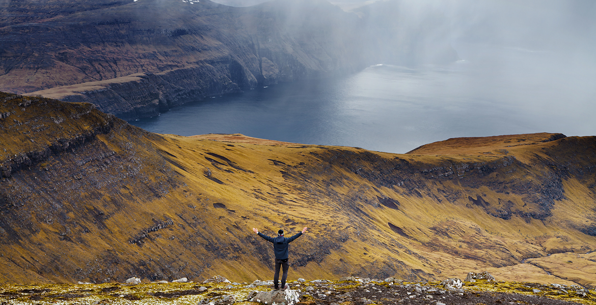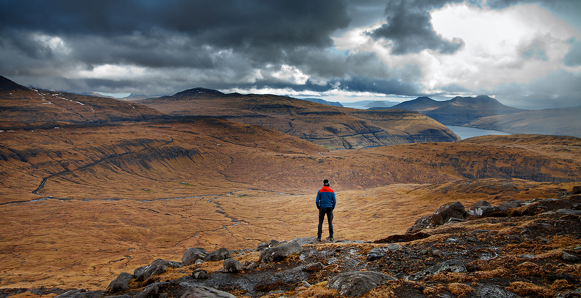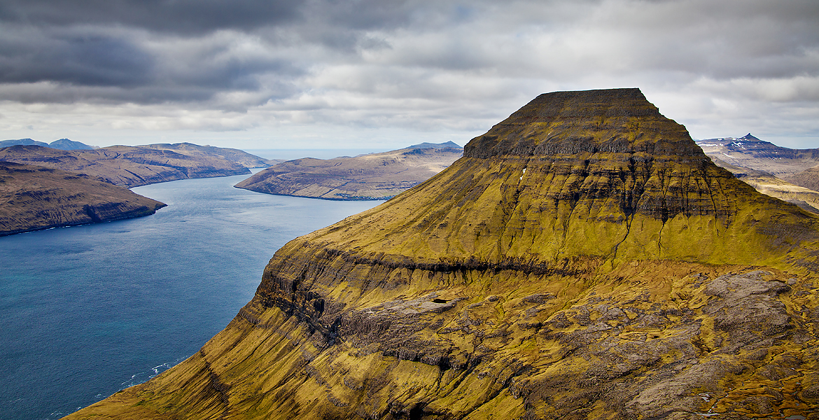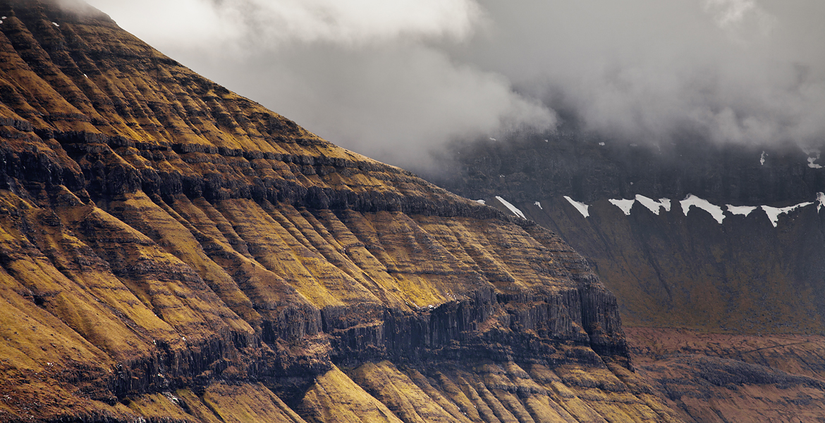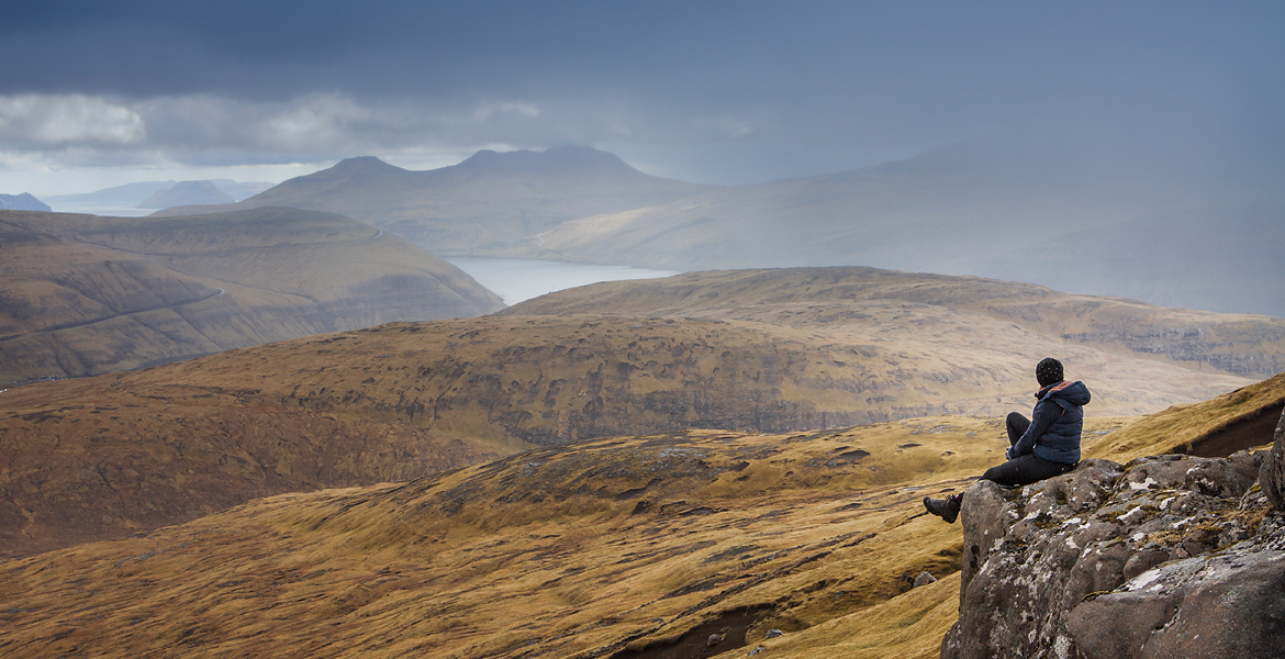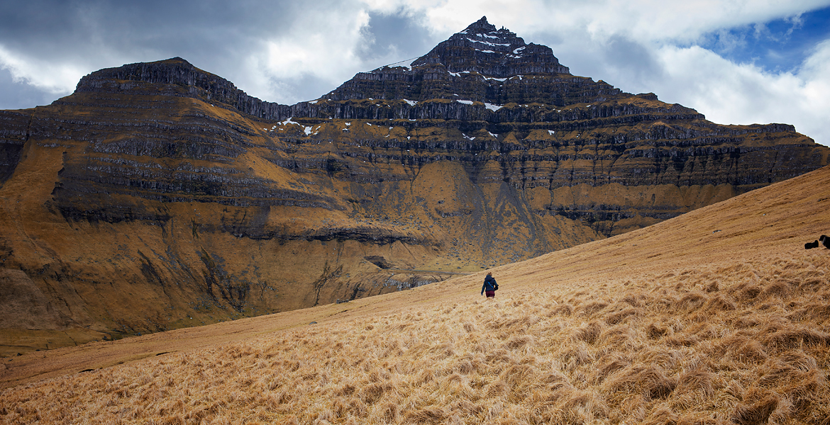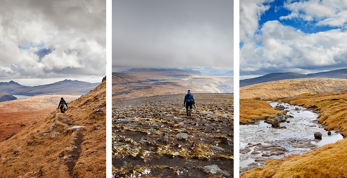 Die Wanderung war nicht ausgeschildert, Wege gab es auch nicht. Mit Hilfe von Wegbeschreibungen aus dem Internet und GPS haben wir uns auf den Weg nach oben gemacht. Wir sind im Nieselregen losgelaufen, die Wolken auf den Bergen sahen einfach toll aus. Ehrlich gesagt sehen die Landschaften auf den Färöern viel spektakulärer aus, wenn es trüb, düster und stürmisch ist. Blauer Himmel und Sonnenschein lassen das alles gar nicht richtig wirken.