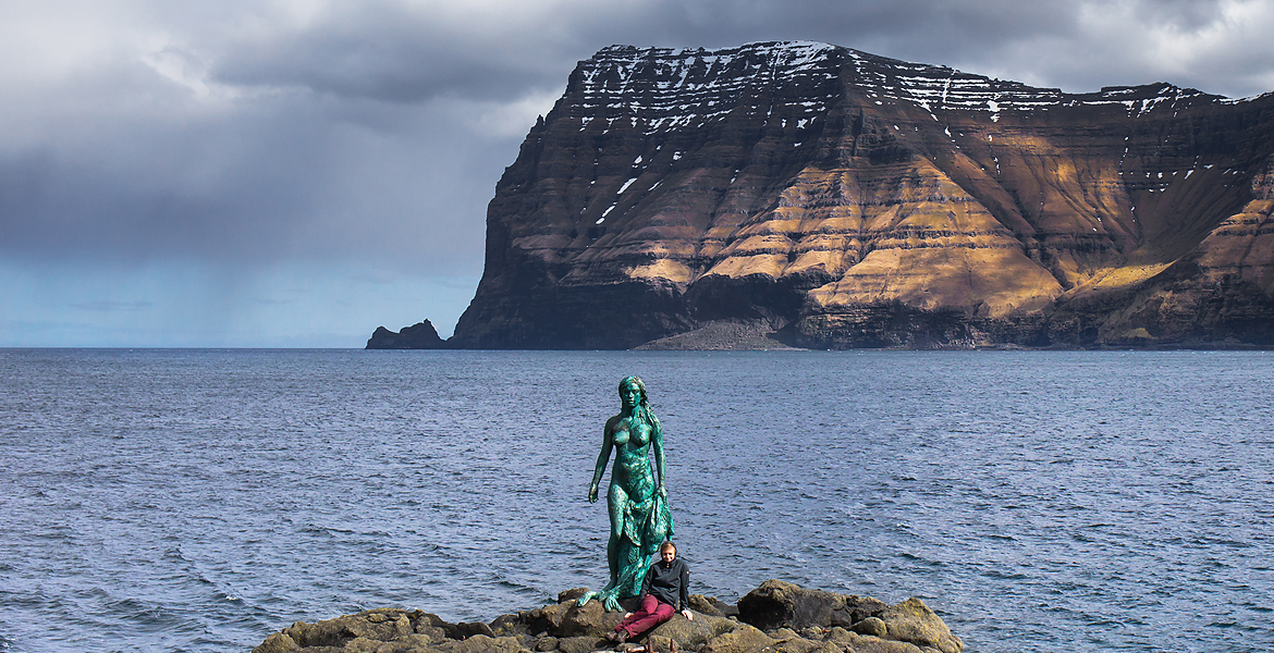 Bis 2006 mussten die Einwohner noch einen Berg überqueren um ins benachbarte Dorf zu kommen, denn der Hubschrauber kann aufgrund der Wetterbedingungen dort nicht immer fliegen. Bis zur Tunneleröffnung 2006, galt das Dorf als eines der isoliertesten Europas. Der Bergpass liegt auf mehr als 400 m Höhe und ist 3,5 km lang. Man benötigt ca. 2,5 Stunden zu Fuß. Wir selber sind auch den Berg rauf, also ich möchte das nicht machen um zum Supermarkt zu kommen. Für dieses Foto sind wir allerdings bequem durch den Tunnel gefahren. Es war schön stürmisch, perfekt für ein richtig raues Färöer Foto. Wir sind an einem späteren Tag allerdings rauf auf den Berg und haben das Dorf noch einmal von oben bestaunt. Auf dem Weg nach Torshavn noch ein paar Fotostops. Über die tolle Pferdestatue im Wasser habe ich leider keine Infos gefunden, auf jeden Fall sah sie immer toll aus von der Straße. Abends ging es dann noch Essen im Angus Steak House.